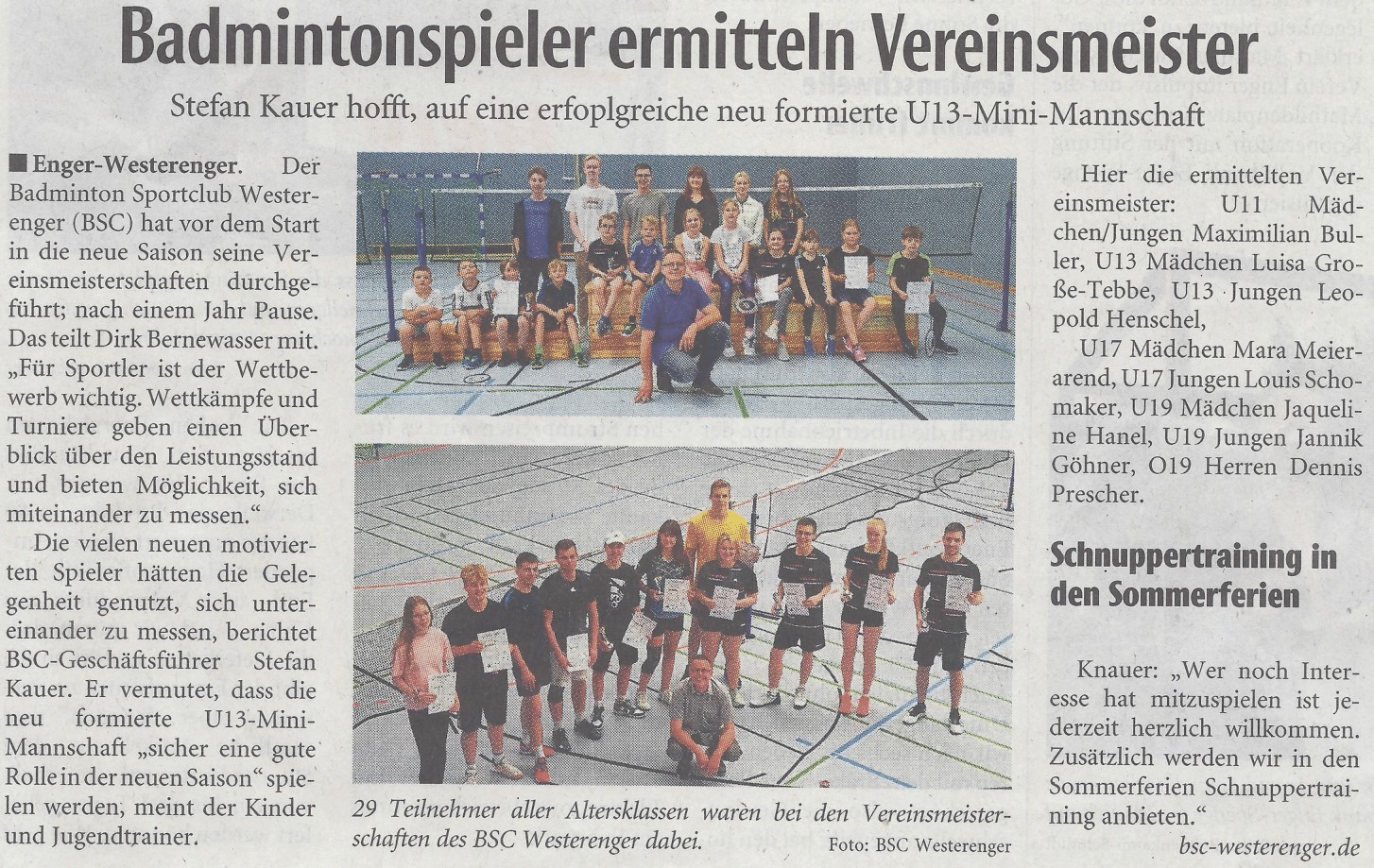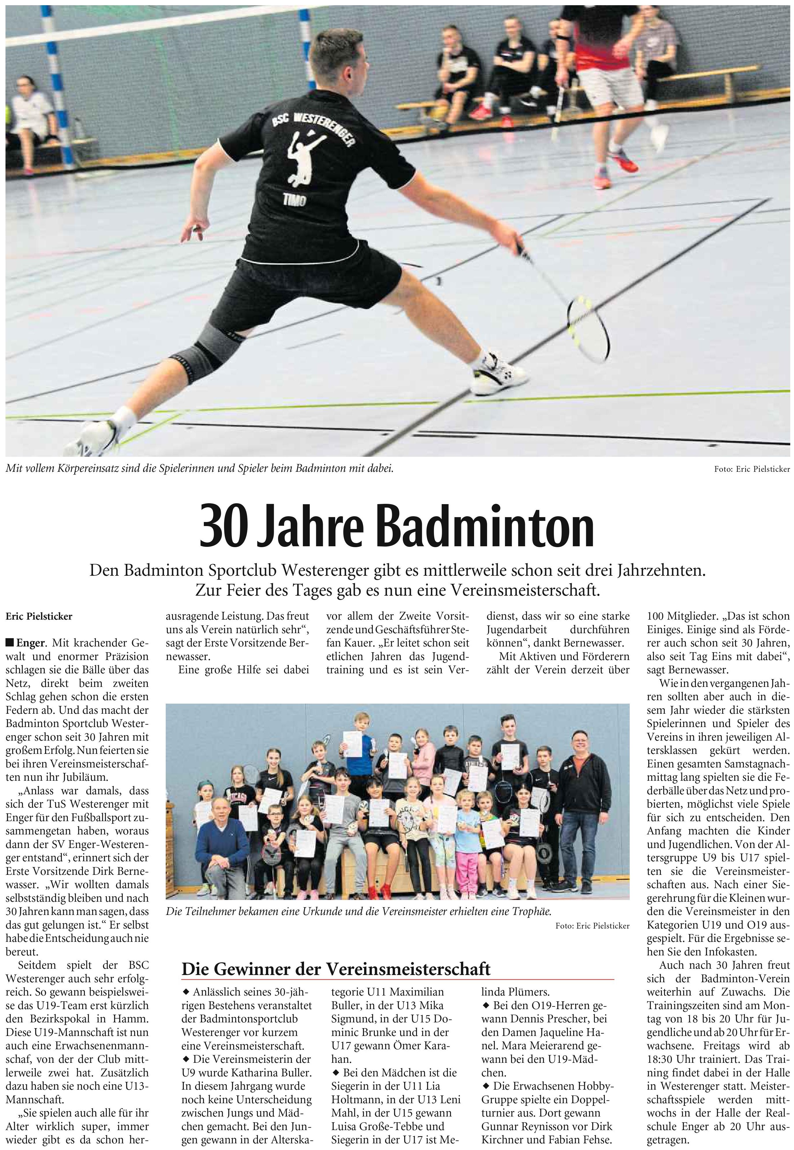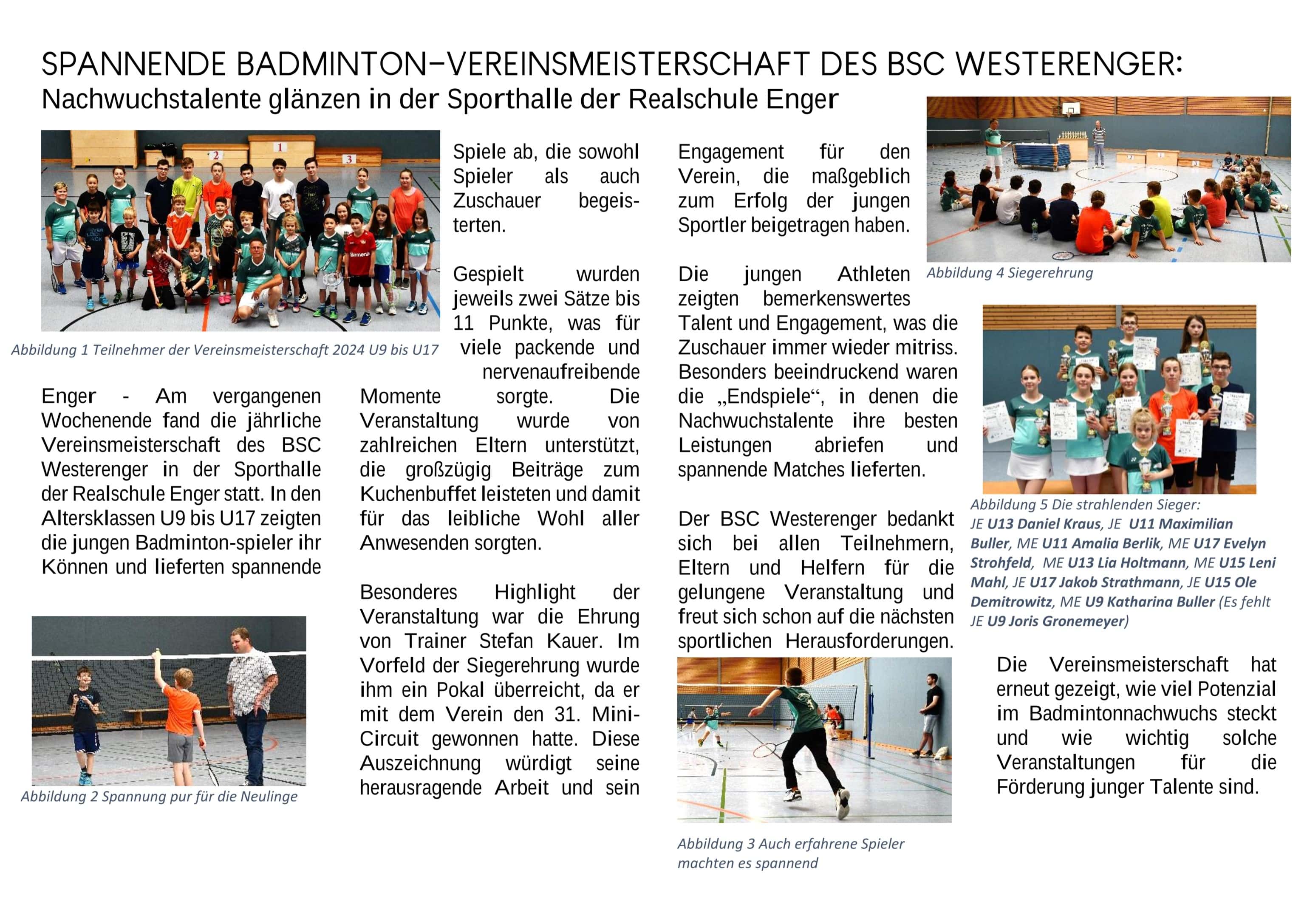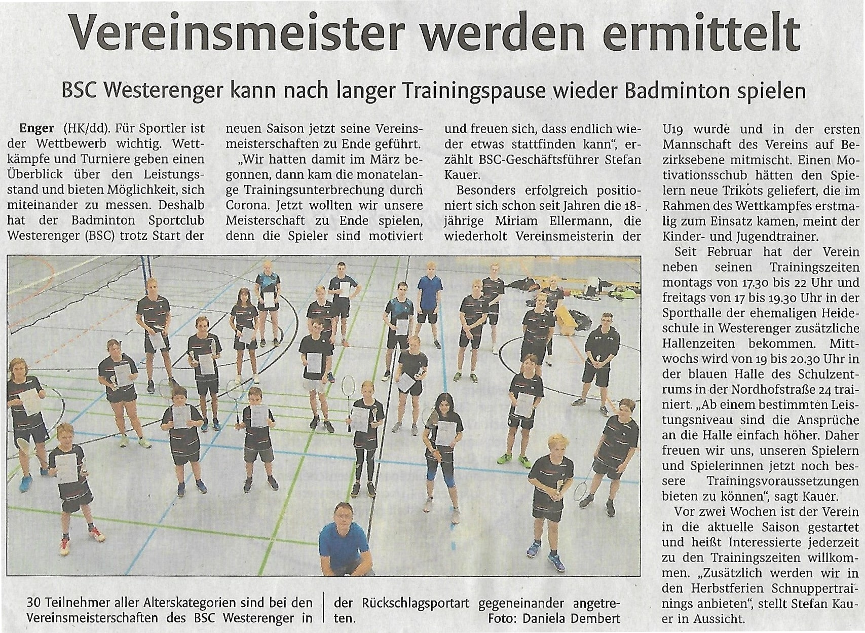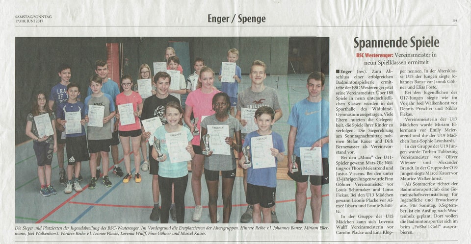 Spannende Badminton-Vereinsmeisterschaft des BSC Westerenger
