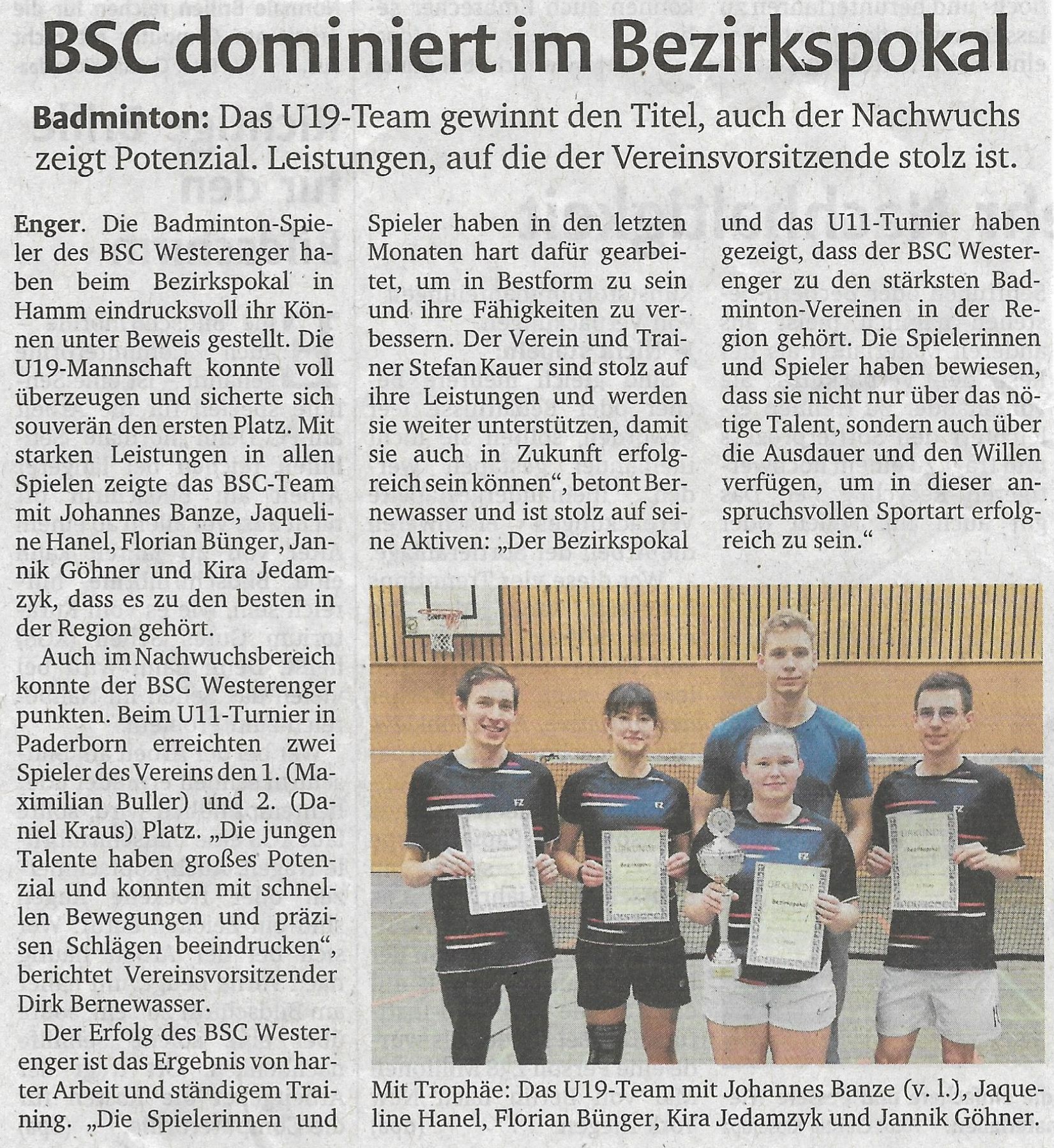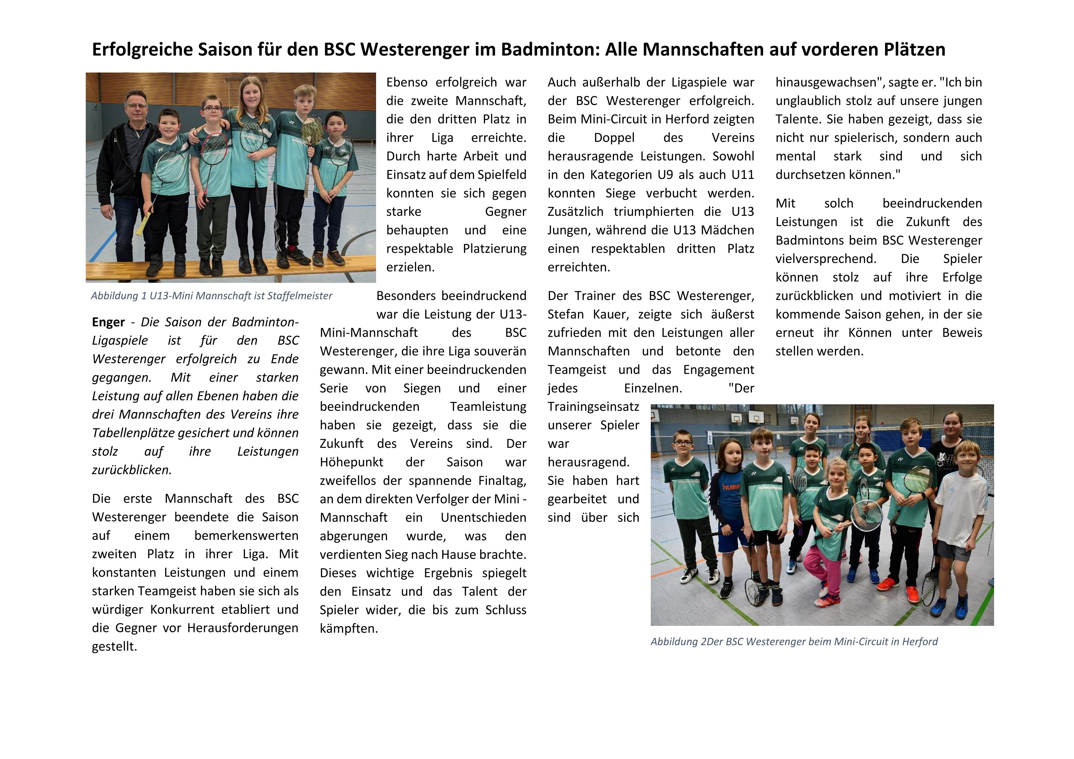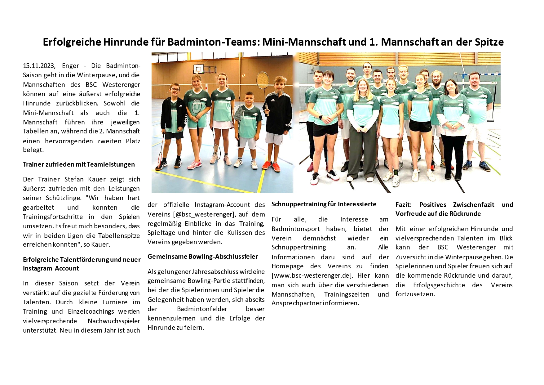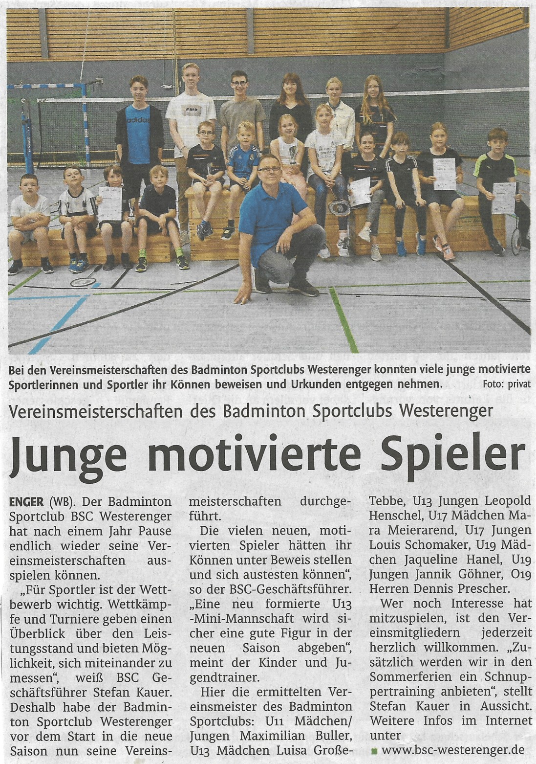 Spannende Badminton-Vereinsmeisterschaft des BSC Westerenger